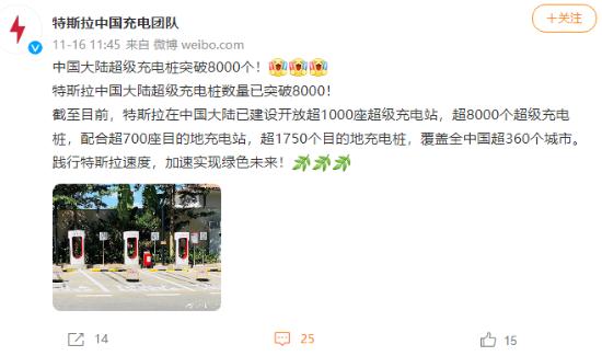 近日,@特斯拉中國充電團隊在社交平臺宣布,中國大陸超級充電樁突破 8000 個(gè)。特斯拉表示,截至目前,特斯拉在中國大陸已建設開(kāi)放超 1000 座超級充電站,超 8000 個(gè)超級充電樁,配合超 700 座目的地充電站,超 1750 個(gè)目的地充電樁,覆蓋全中國超 360 個(gè)城市。