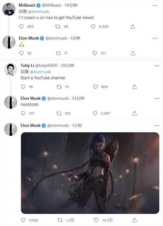 還有網(wǎng)友給他提建議,不如去 YouTube 做視頻或直播,但馬斯克表示自己干不了這個(gè),技術(shù)太菜了。不過(guò),他的粉絲中好像有 YouTuber 大佬表示自己可以出手幫他。