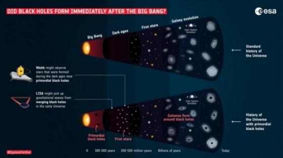 與此同時(shí),LISA 將能夠從原生黑洞的早期合并中獲取引力波信號。