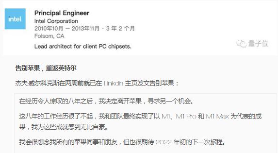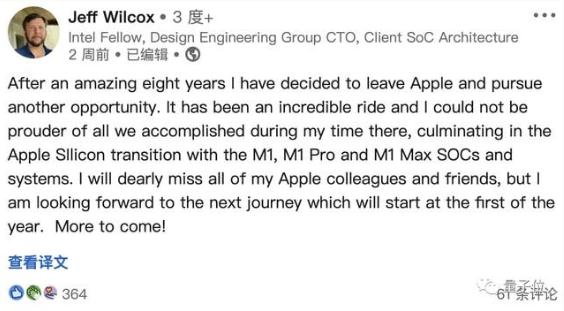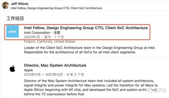 蘋(píng)果 Mac 系統架構總監杰夫·威爾科克斯(Jeff Wilcox)已跳槽到英特爾,負責領(lǐng)導英特爾的 SoC 架構設計工作。