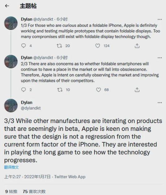 Dylandkt 在 Twitter 上說(shuō),蘋(píng)果正在研究未來(lái)可能的設備,但可折疊顯示技術(shù)還不夠先進(jìn),仍有太多的“妥協(xié)”需要處理。在發(fā)布可折疊 iPhone 之前,蘋(píng)果希望確定可折疊設計不是“iPhone當前外形的倒退”,如果因為折疊功能而出現顯示屏壽命和質(zhì)量問(wèn)題,這種情況確實(shí)可能發(fā)生。Dylandkt的評論表明,蘋(píng)果對可折疊智能手機技術(shù)繼續采取觀(guān)望態(tài)度,但其他一些傳言表明,蘋(píng)果可能最快在 2023 年發(fā)布可折疊 iPhone。