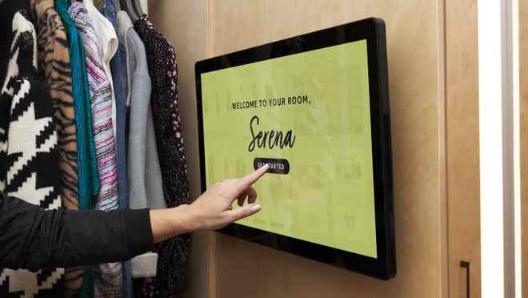在掃描商品上的二維碼后,購物者可以點(diǎn)擊亞馬遜應用程序中的按鈕,將商品添加到試衣間或發(fā)送到提貨柜臺。在試衣間,亞馬遜增加了觸摸顯示屏,購物者可以使用它對商品進(jìn)行評級,或者要求將不同款式或尺寸的商品送到試衣間。然后,每件衣服都被放在試衣間的“安全衣柜”里,在店員送衣服后,衣柜就會(huì )解鎖。亞馬遜表示,這使得顧客可以繼續購物,而不必離開(kāi)試衣間。