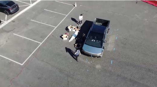 Cybertruck 在弗里蒙特工廠(chǎng)的測試場(chǎng)附近被發(fā)現,暗示了其身份。在那輛電動(dòng)皮卡附近依稀可以看到幾個(gè)人,在它周?chē)教幮扌扪a補。