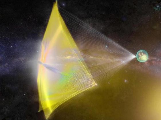 藝術(shù)家對運行中的定向能推進(jìn)激光帆的印象。