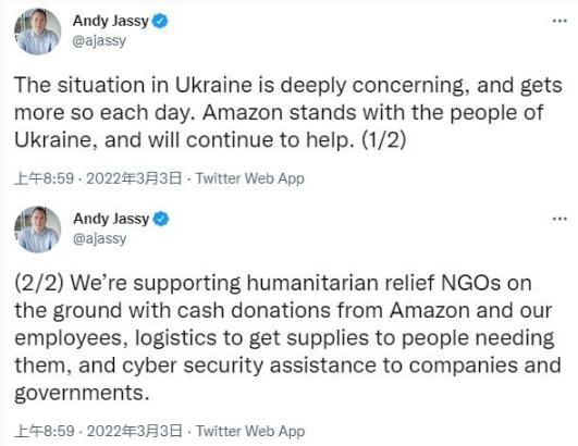Andy Jassy 指出:與其它美國技術(shù)提供商不同,AWS 并未在俄羅斯設置數據中心、基礎設施、或辦事處,此外該公司有著(zhù)不與俄羅斯政府開(kāi)展業(yè)務(wù)的長(cháng)期政策。