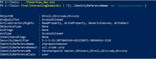 注意:- 此命令無(wú)法檢索 DCSync 權限的值,我們將始終將值視為“WriteAttributes”,我們需要從加入域的機器上運行此命令。