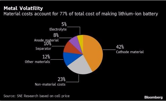 James Oh 表示,雖然這些公司沒(méi)有透露會(huì )提高多少價(jià)格,但在 2025 年之前,使用鋰、鎳、鈷和錳的公司可能會(huì )將電池組的價(jià)格提高 40%。