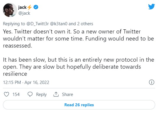 Twitter 前 CEO 杰克?多西(Jack Dorsey)發(fā)推文表示,如果公司所有者發(fā)生變化,Bluesky 項目的資金可能需要重新評估。