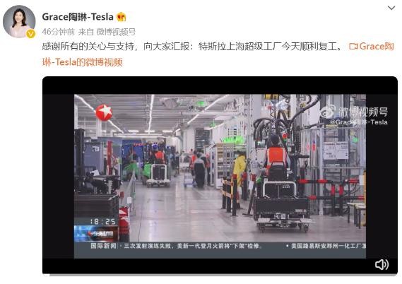 今日晚間,特斯拉對外事務(wù)副總裁陶琳通過(guò)社交媒體表示,特斯拉上海超級工廠(chǎng)今天順利復工。