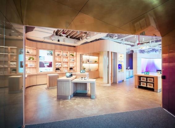 相比起谷歌零售店,它顯得有點(diǎn)小。這家店占地 1550 平方英尺,位于 Meta 的 Reality Labs 總部(位于伯林蓋姆機場(chǎng)大道 322 號)附近,而不是像谷歌在曼哈頓這樣的主城區。