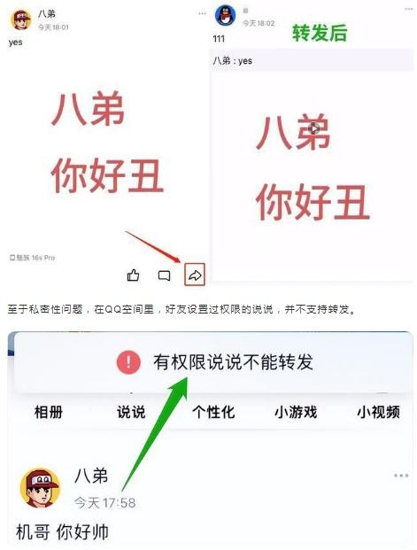 那看看自家企鵝,隔壁QQ空間里,說(shuō)說(shuō)同樣支持轉發(fā)。