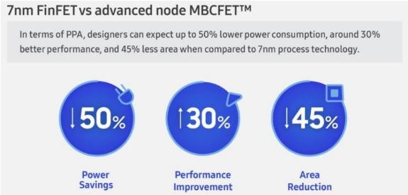三星表示,該工藝將實(shí)現 30% 的性能提升、50% 的功耗降低以及高達 80% 的晶體管密度(包括邏輯和 SRAM 晶體管的混合)。不過(guò),三星的性能和功耗的實(shí)際組合將如何發(fā)揮作用還有待觀(guān)察。