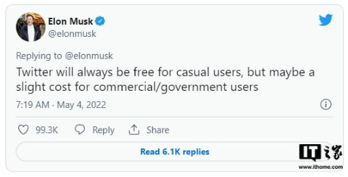 IT之家了解到,馬斯克說(shuō),推特將始終對“普通用戶(hù)”保持免費,但政府和商業(yè)用戶(hù)可能需要付出“輕微成本”。