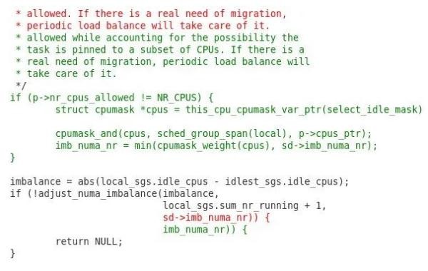 補丁的內容主要為:當 find_idlest_group () 函數中允許 NUMA 不平衡時(shí),公平調度程序的更改正在考慮 CPU 親和性。AMD 工程師 K Prateek Nayak 解釋說(shuō):