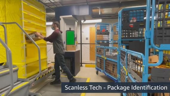 此外,亞馬遜還展示了可以用來(lái)代替手動(dòng)掃描條形碼的設備。工作人員站在攝像頭系統前,該攝像頭系統無(wú)需停下來(lái)掃描標簽即可識別包裹。