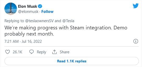 馬斯克稱(chēng)整合Steam的工作取得進(jìn)展 下個(gè)月或會(huì )演示 10:58:28