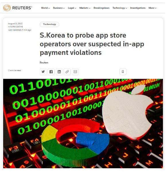 去年,韓國通過(guò)了名為《電信業(yè)務(wù)法》的修正案,禁止谷歌和蘋(píng)果等主要應用商店運營(yíng)商強迫軟件開(kāi)發(fā)商使用其支付系統,該法規自 3 月起生效。