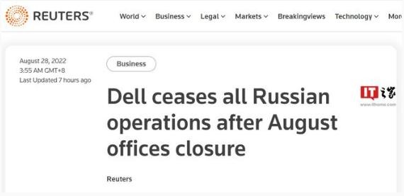 而今日,戴爾發(fā)言人 Mike Siemienas 告訴路透社:“8 月中旬,我們關(guān)閉了辦公室并停止了所有俄羅斯業(yè)務(wù)。”