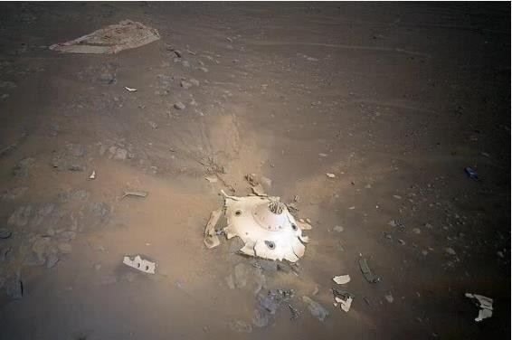 Ingenuity 直升機拍到丟棄在火星上的漫游車(chē)降落設備。