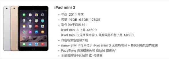 蘋(píng)果 iPad mini 3 于 2014 年 10 月發(fā)布,采用 A7 芯片,擁有 7.9 英寸屏幕,加入了 Touch ID 指紋識別功能。