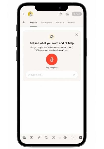Bidawatka 稱(chēng) Koo 是第一個(gè)將聊天機器人整合到貼文撰寫(xiě)的平臺。用戶(hù)可以將揭示信息輸入 ChatGPT 工具,也可以用 Koo 語(yǔ)音命令輸入。他還補充說(shuō),大約有 20% 的 Koo 用戶(hù)喜歡在應用內撰寫(xiě)內容,ChatGPT 能將比例提高。