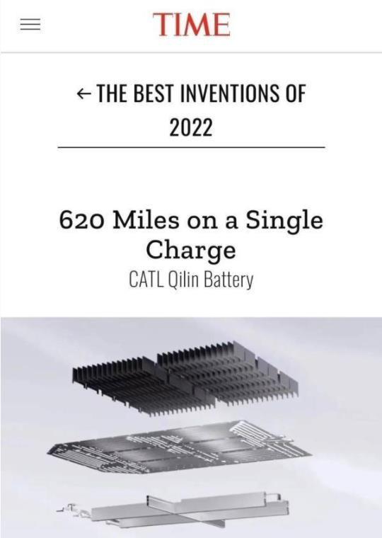 去年 11 月底,麒麟電池被美國《時(shí)代》周刊(TIME)評為 2022 年度最佳發(fā)明。