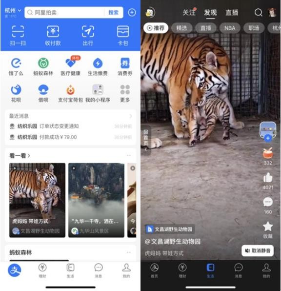 支付寶首頁(yè)新增看一看卡片 點(diǎn)擊后會(huì )跳轉至生活頻道播放視頻 14:35:28