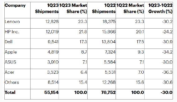 根據美國科技市場(chǎng)研究公司高德納的報告,今年第一季度,蘋(píng)果在全球個(gè)人電腦市場(chǎng)中占據了 9.3% 的份額。不過(guò)總體上看,全球個(gè)人電腦市場(chǎng)一直在全面萎縮,每年的出貨量以 30% 的速度暴跌。今年一季度,蘋(píng)果個(gè)人電腦業(yè)務(wù)獲得了 71.7 億美元的銷(xiāo)售收入,同比也是大幅下跌了 31%。
