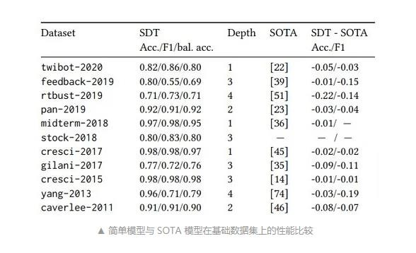 當這些模型在其他領(lǐng)域的數據集上進(jìn)行測試時(shí),它們的準確性很差,幾乎與隨機預測水平相當。同時(shí),在許多數據集上,即使是相對簡(jiǎn)單的模型也與最先進(jìn)的機器學(xué)習模型(SOTA)準確率相當。