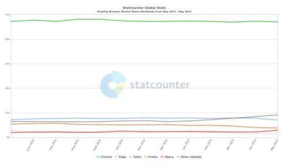 Statcounter 的 2023 年 6 月報告現已發(fā)布,其中包含有關(guān)瀏覽器及其市場(chǎng)份額變化的最新詳細信息。