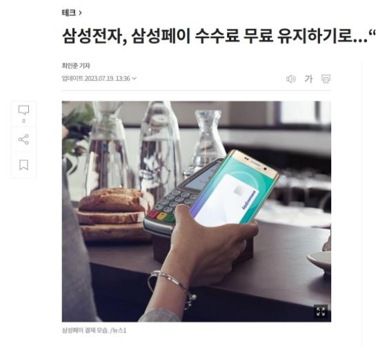 據韓媒《????》報道,三星電子 19 日宣布,公司已決定“Samsung Pay 繼續免費”,并計劃與國內卡公司續簽合同。
