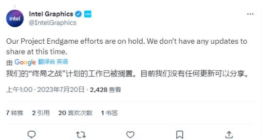 英特爾官方推特賬號 Intel Graphics 在回復網(wǎng)友提問(wèn)時(shí),明確表示已經(jīng)擱置 Project Endgame 項目,現階段沒(méi)有任何更新可以分享。