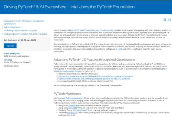 英特爾日前在官網(wǎng)上發(fā)布新聞稿,宣布以 Premier 會(huì )員身份加入 PyTorch 基金會(huì )。