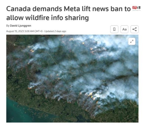 據路透社報道,加拿大政府要求 Meta 解除其平臺上禁止分享加拿大新聞的禁令,以允許人們分享有關(guān)西部山火的信息。