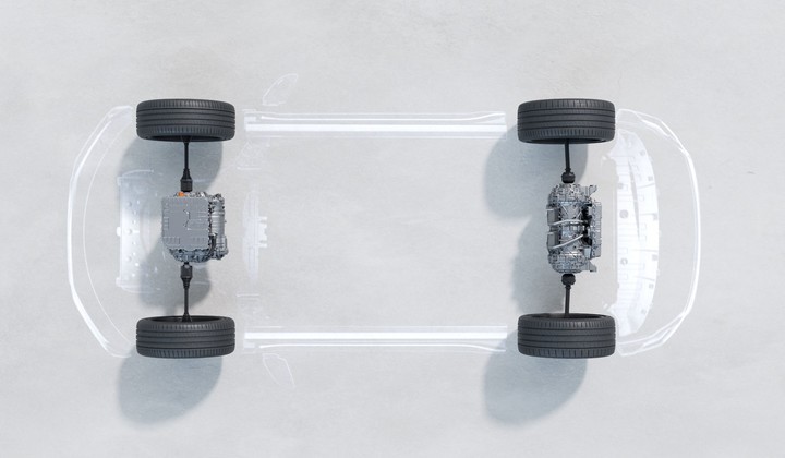 為了將這 4 臺高性能 SiC 電機塞進(jìn)極氪 001 里,同時(shí)不能犧牲任何車(chē)內空間,極氪將前面兩臺電機前后平行放置,只用一臺電機的空間,裝下了兩臺能夠獨立控制的高性能電機。