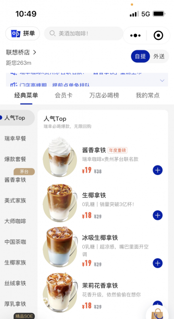 在瑞幸咖啡小程序上,這款“醬香拿鐵”零售價(jià) 38 元/杯,使用優(yōu)惠券后大約 19 元/杯。