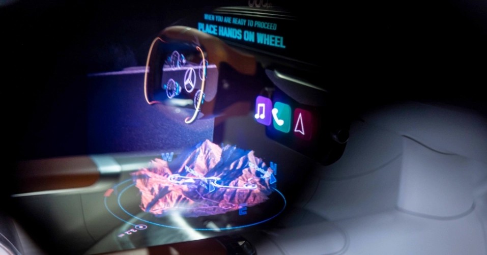 其配備有一條細長(cháng)的像素風(fēng)車(chē)機屏幕,用以顯示車(chē)輛時(shí)速等核心信息,奔馳官方將這種設計稱(chēng)之為“復古未來(lái)主義的 8-bit 像素風(fēng)格”,奔馳還與 Magic Leap 進(jìn)行合作,佩戴 Magic Leap 2 AR 眼鏡,還會(huì )在車(chē)內實(shí)時(shí)顯示 AR 地圖、可交互按鈕、虛擬儀表盤(pán)等內容。
