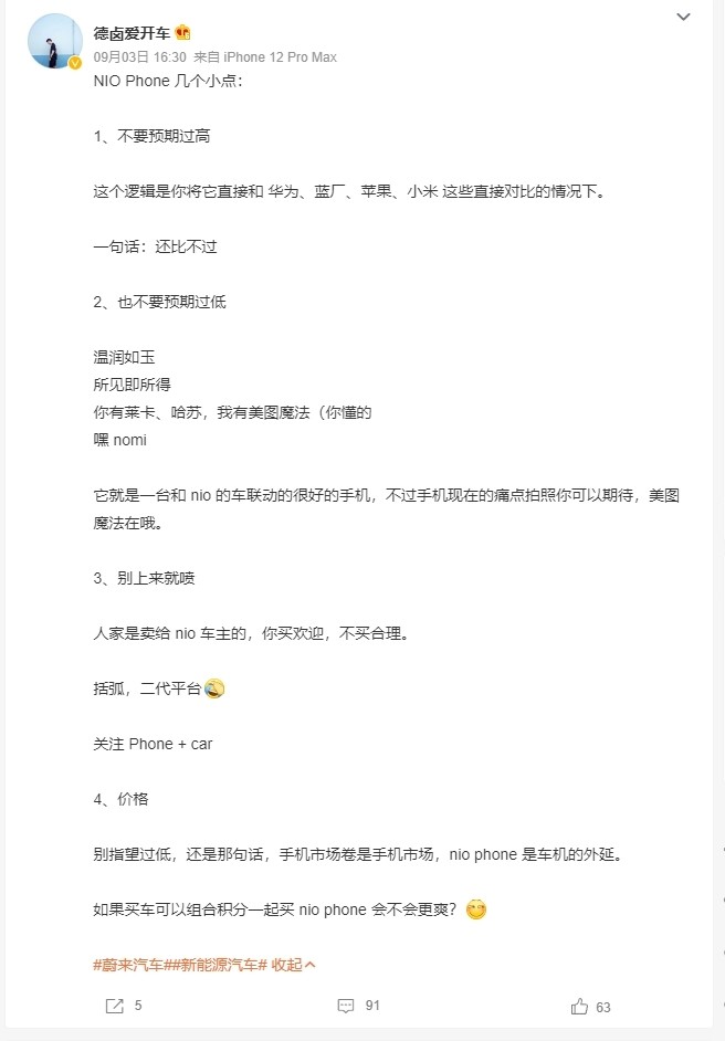 根據已經(jīng)拿到 NIO Phone 的博主所言,這款手機雖然相比華為、vivo、蘋(píng)果、小米這些大廠(chǎng)還有不少差距,但依然值得期待。