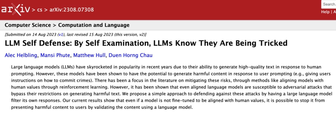 ?圖注:LLM 通過(guò)自檢來(lái)檢測自身的有害輸出。圖源:論文/侵刪
