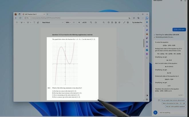 在今天的發(fā)布會(huì )上,微軟還發(fā)布了一個(gè)名為 Ink Anywhere 的新功能。除了可以用手寫(xiě)筆書(shū)寫(xiě)數學(xué)等式提問(wèn)外,手寫(xiě)筆還能直接選中帶圖片的數學(xué)問(wèn)題,交給 Copilot 進(jìn)行解答。