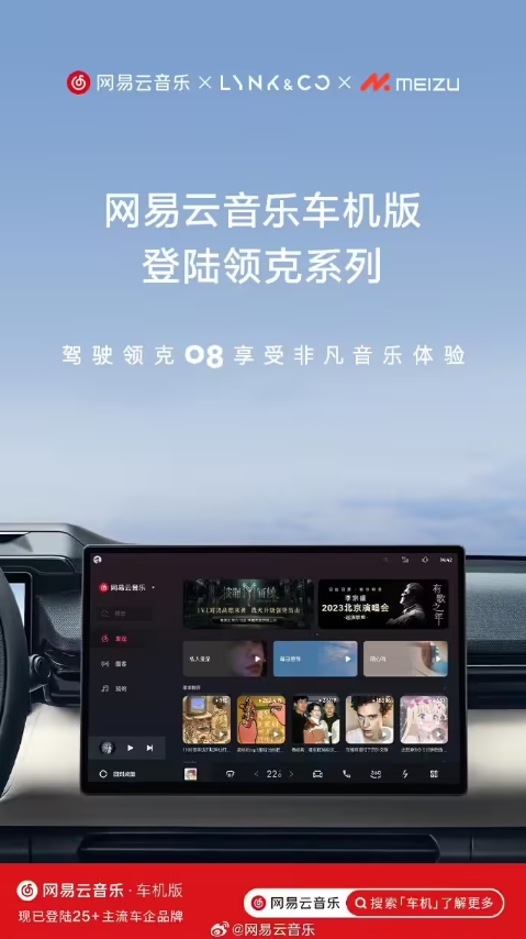 網(wǎng)易云音樂(lè )車(chē)機版登陸領(lǐng)克系列汽車(chē),支持魅族 Flyme Auto 平臺 15:31:19