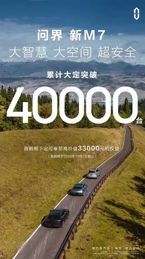 3500 輛:?jiǎn)?wèn)界新 M7 車(chē)型破單日大定紀錄,累計超 4 萬(wàn)輛 09:24:36