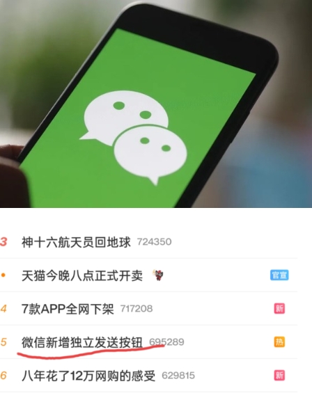 iOS微信新增獨立發(fā)送按鈕上熱搜 安卓用戶(hù):一直都是