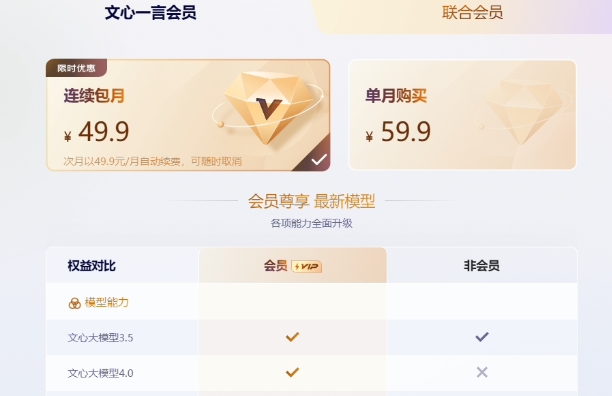 百度文心一言推出會(huì )員:連續包月 49.9 元,可解鎖文心大模型 4.0