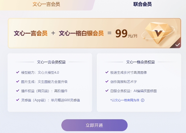 文心一言會(huì )員權益: