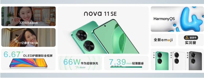 華為 nova 11 SE 今日正式發(fā)售,提供 256GB、512GB 兩種存儲版本以及 11 號色、雪域白、曜金黑三種配色,分別為 1999 元和 2199 元。