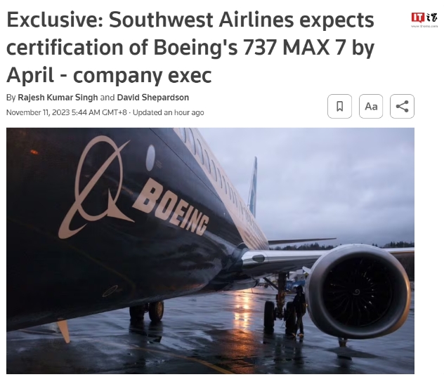 據路透社報道,西南航空一位高管透露,波音 737 MAX 7 飛機將于 2024 年 4 月獲得美國聯(lián)邦航空管理局的認證,并將于 10-11 月開(kāi)始投入運營(yíng)。