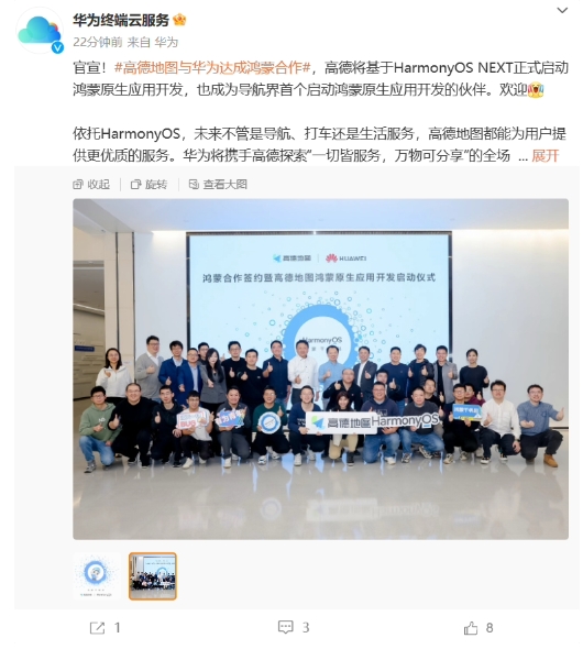 華為今日官宣,高德地圖與華為達成鴻蒙合作,高德將基于 HarmonyOS NEXT 正式啟動(dòng)鴻蒙原生應用開(kāi)發(fā),也成為導航界首個(gè)啟動(dòng)鴻蒙原生應用開(kāi)發(fā)的伙伴。