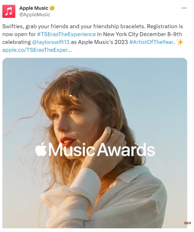 Apple Music 宣布將于 12 月 8 日- 9 日在紐約舉辦“泰勒?斯威夫特時(shí)代:體驗(Taylor Swift Era's: The Experience)”活動(dòng),慶祝泰勒?斯威夫特榮獲 Apple Music 2023 年度藝術(shù)家稱(chēng)號,現已開(kāi)放報名。