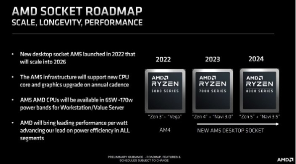 AMD此前已經(jīng)表明將把AM5平臺至少堅持更新到2025年,并計劃在2024年進(jìn)行重大更新,因此AMD下一代的700系主板不會(huì )改變插槽規格,保持對當前銳龍7000系CPU的兼容的同時(shí),進(jìn)一步支持下一代銳龍8000系列Zen 5處理器。目前的AMD 600系主板中,高端型號是采用了雙PCH設計以實(shí)現更強的平臺擴展性,而AMD 700系主板有可能會(huì )轉向單PCH設計,在保證擴展性不變或者更強的前提下進(jìn)一步降低芯片的功耗與發(fā)熱量,并帶來(lái)Wi-Fi 7等新特性。